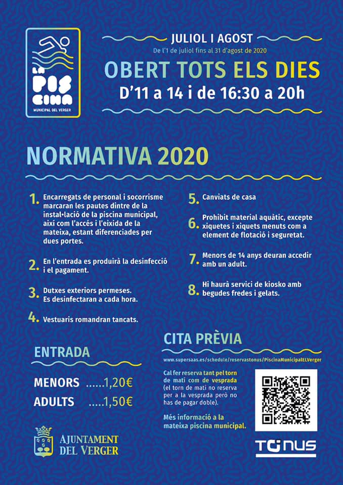 L’Ajuntament del Verger informa que a partir del proper dimecres, dia 1 de juliol, la piscina municipal obri de nou les seues portes.