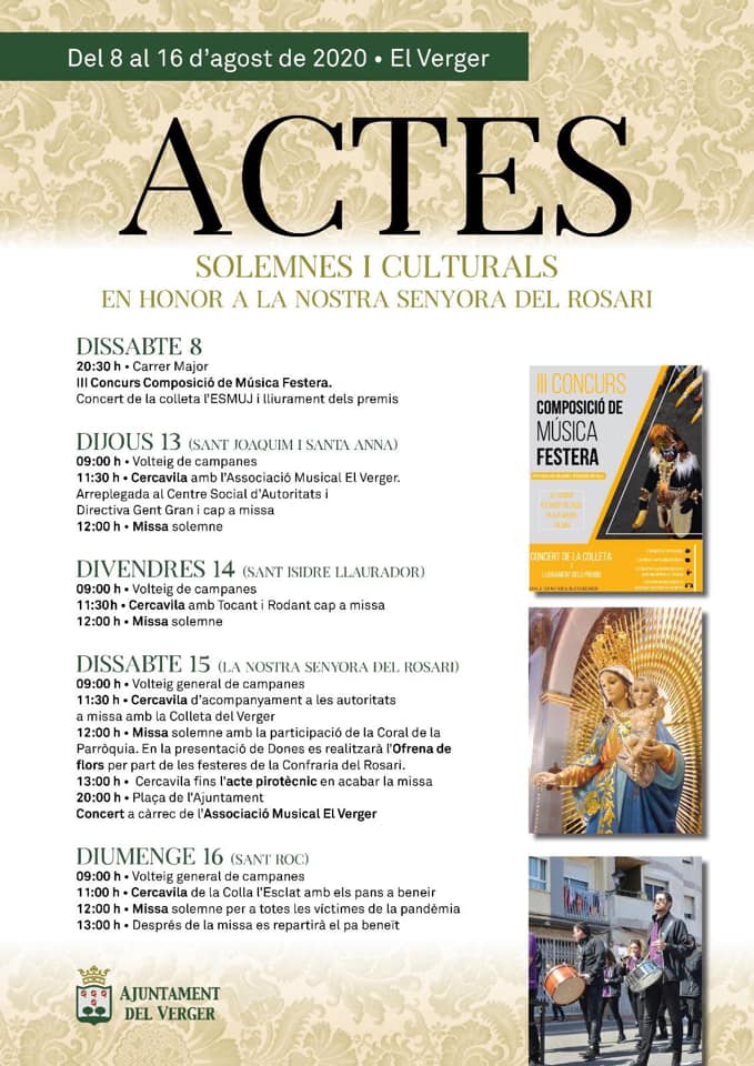 DECRET DE CANCEL·LACIÓ DE LES FESTES PATRONALS EL VERGER 2020