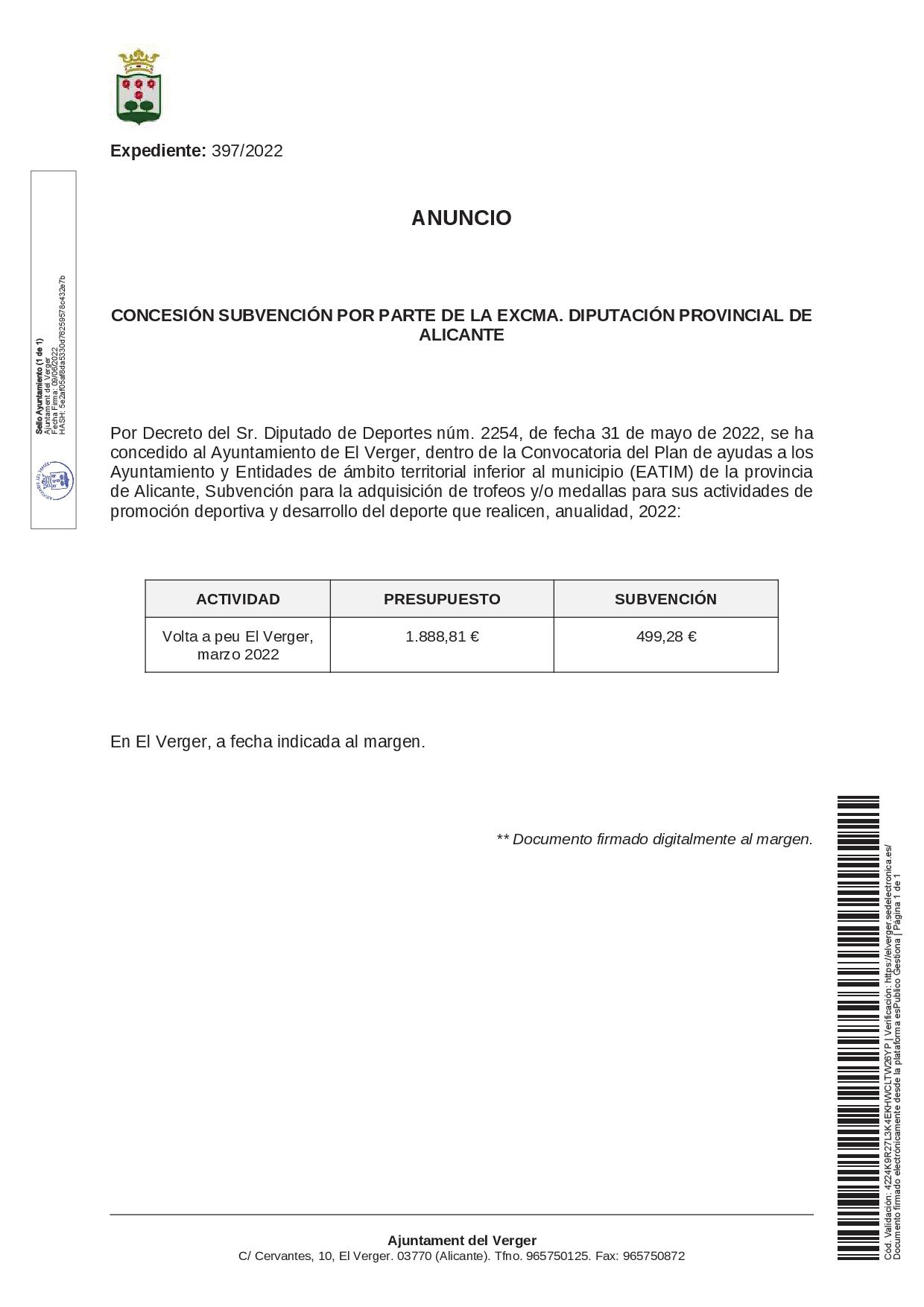 L’objecte del present anunci és la provisió en Comissió de Serveis de 3 places d’Agent de la Policia Local del Verger existents en la Plantilla de l’Ajuntament, enquadrades en l’Escala d’Administració Especial, Subescala de serveis Especials, Classe Policia Local, Subgrup C1, i tenint coneixement que poguera haver-hi Agents de la Policia Local d’altres Ajuntaments interessats …