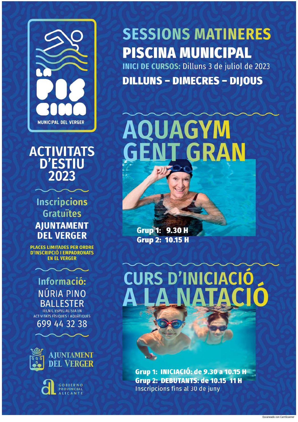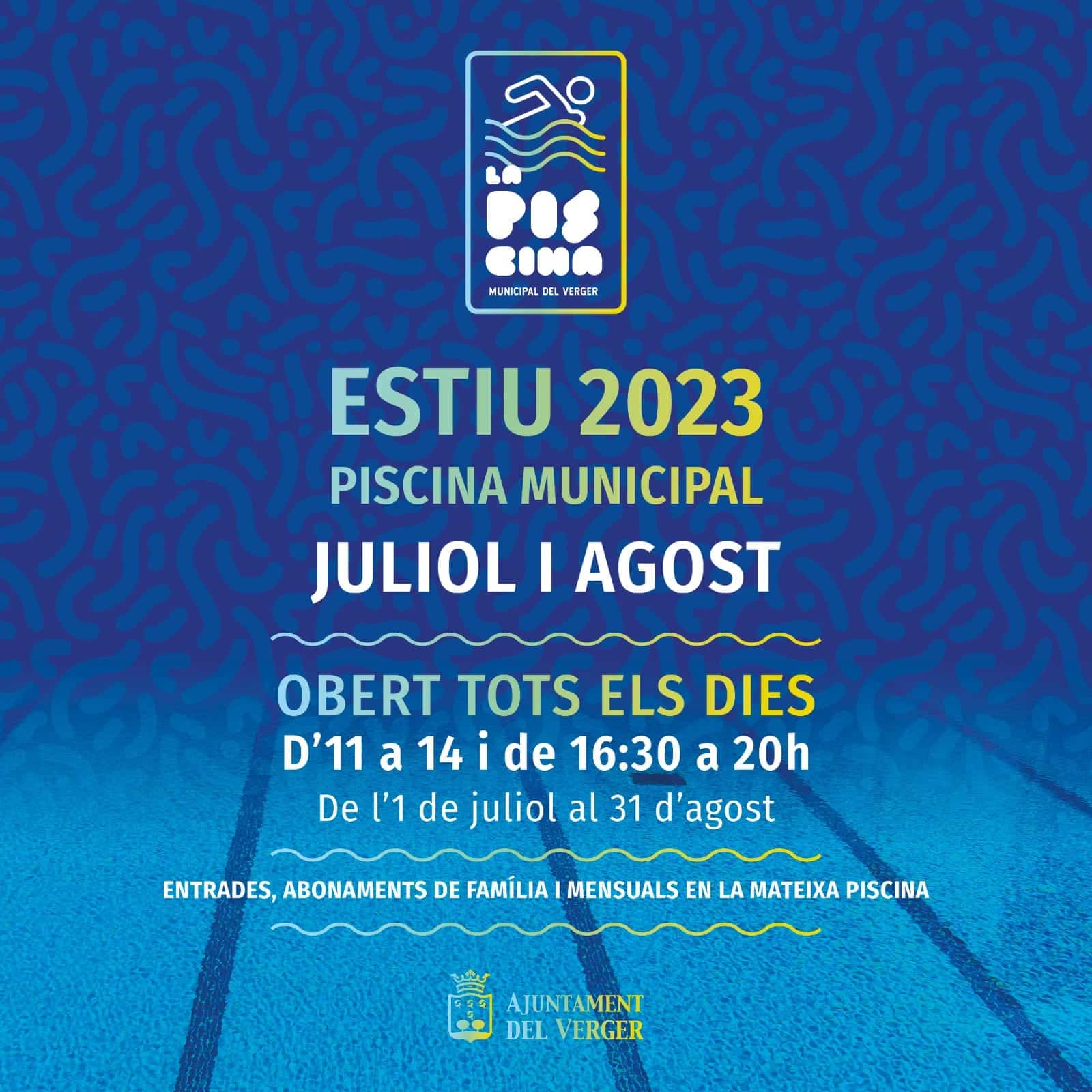Des de la Regidoria d’Esports es comunica que el proper 1 de juliol començarà la temporada de la piscina municipal del Verger fins el 31 d’agost del 2023. Les entrades i abonaments es podran sol·licitar i comprar en la mateixa piscina. Les tarifes d’entrades i abonaments són els següents: – Entrada menors de 14 anys……..1 …