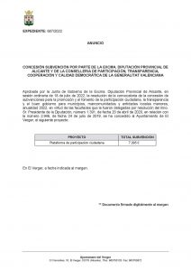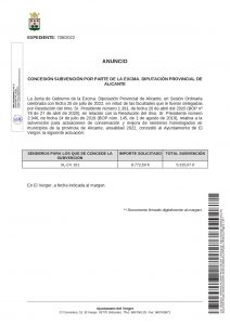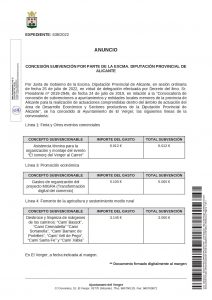 CONCESSIÓ DE DIVERSES SUBVENCIONS PER PART DE L’EXCMA. DIPUTACIÓ D’ALACANT