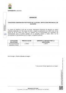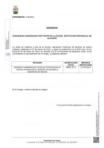 CONCESSIÓ DE DIVERSES SUBVENCIONS PER PART DE L’EXCMA. DIPUTACIÓ D’ALACANT