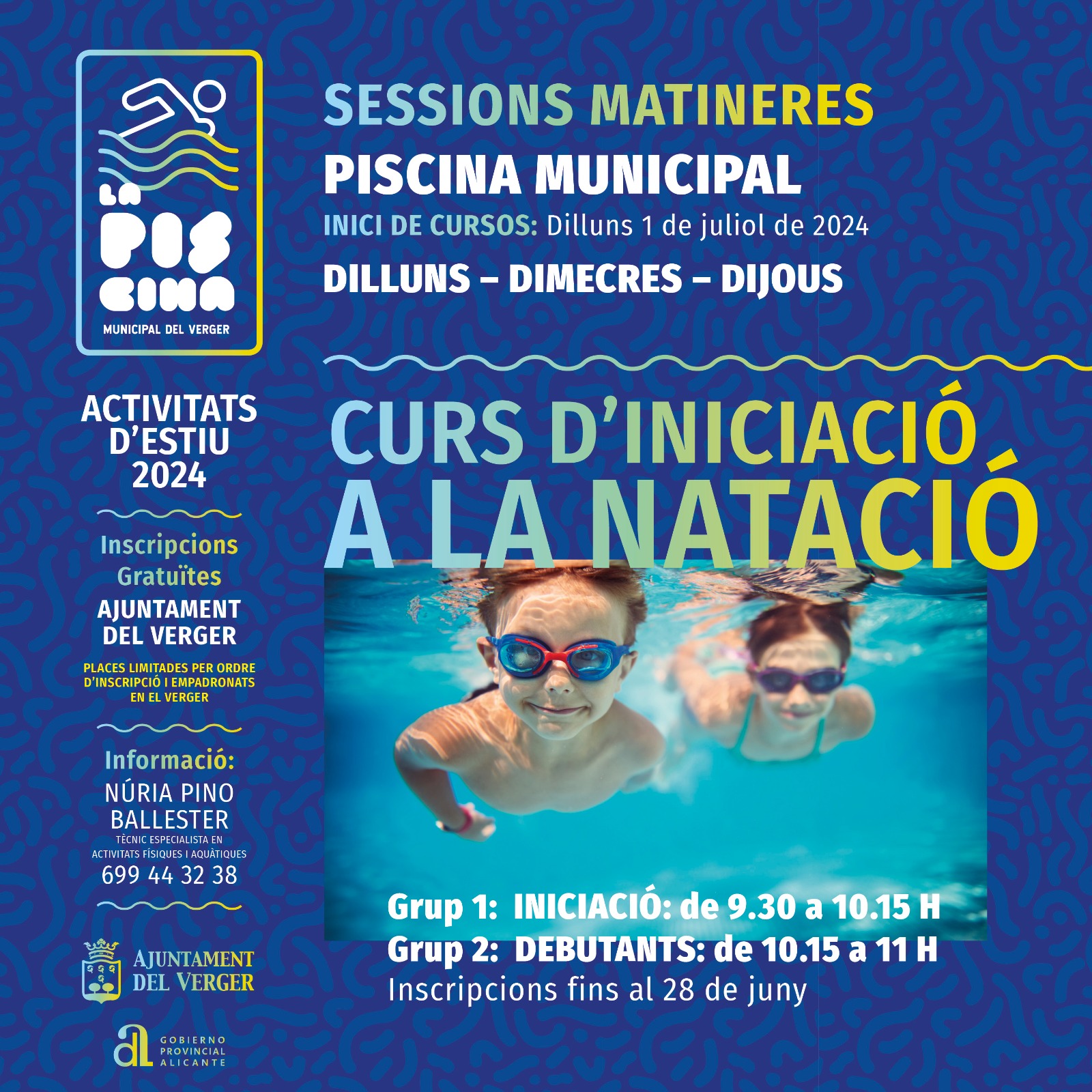 Des de la Regidoria d’Esports es comunica que ja està obert el periode d’inscipció per al curs d’iniciació a la natació per a xiquets/es.