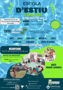 La Regidoria d’Educació de l’Ajuntament del Verger convoca l’Escola d’Estiu i l’Escola Esportiva d’Estiu anualitat 2024, oferint un any més el servei d’escola d’estiu per a xiquets i xiquetes de 6 a 15 anys durant el mes de juliol en l’escola esportiva d’estiu i durant els mesos de juliol i agost en l’escola d’estiu.