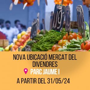 A partir de hui 31 de maig, el Parc Jaume I serà la nova ubicació del mercat dels divendres.