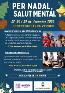 Els propers 27, 28 i 29 de desembre tindran lloc al Centre Social del Verger les primeres jornades de Salut Mental per a joves de entre 12 a 18 anys.