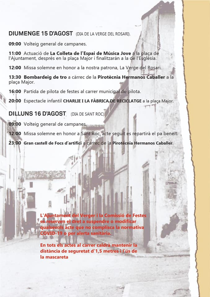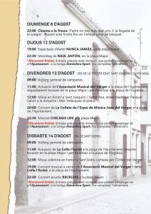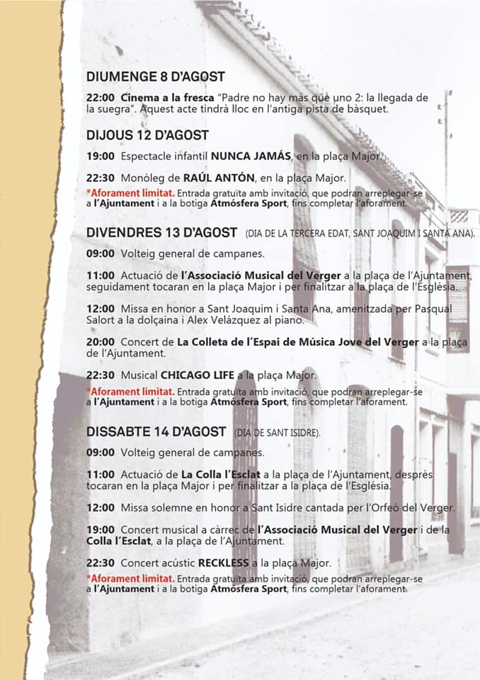 PROGRAMACIÓ CULTURAL FESTES EL VERGER DEL 09 AL 16 D’AGOST