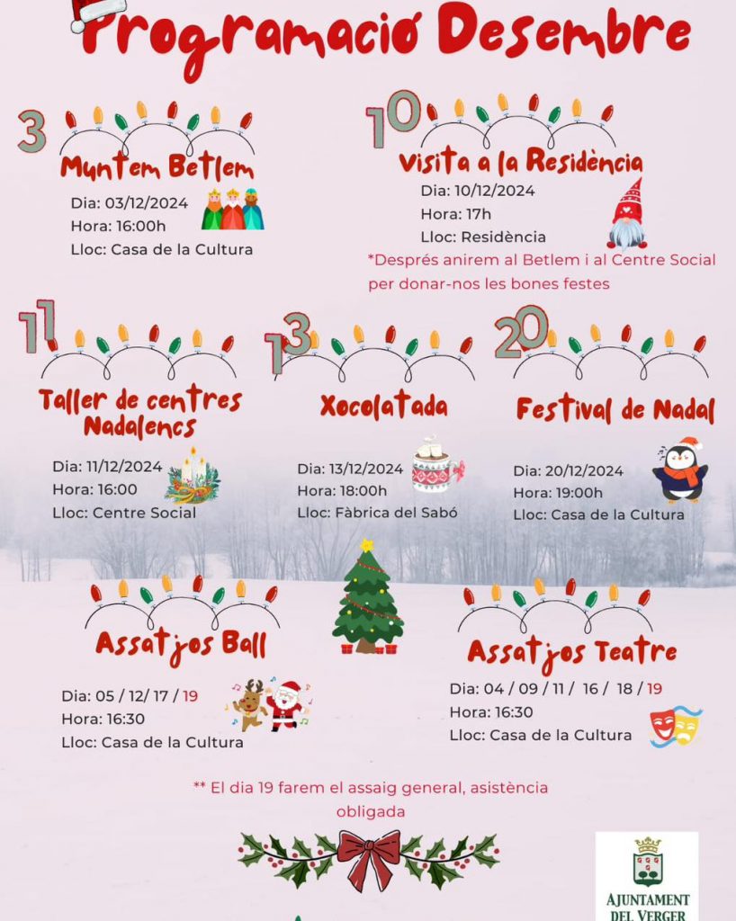 -L’activitat del dia 13 és soles per a membres de la Gent Gran del Verger.