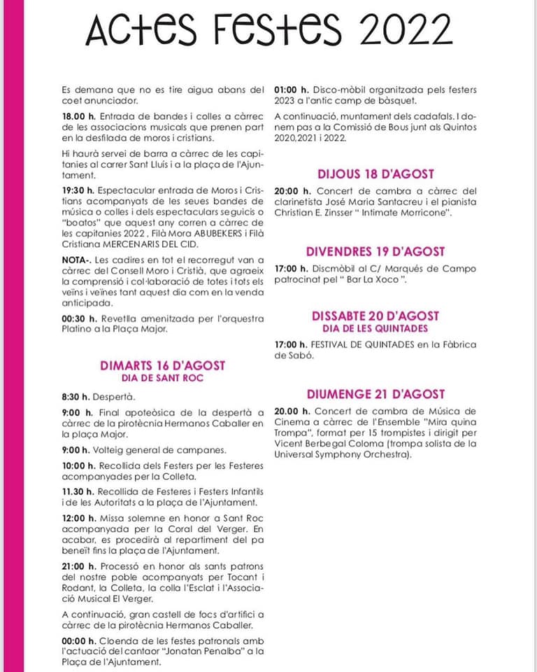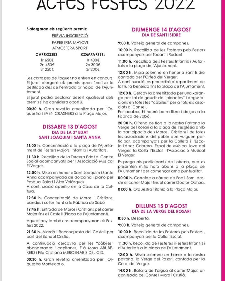 PROGRAMACIÓ FESTES EL VERGER 2022
