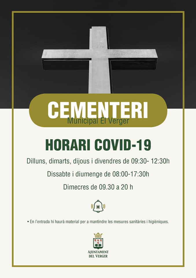 L’Ajuntament del Verger informa que el cementeri municipal obri de nou les seues portes a partir de hui dilluns dia 22 de juny en horari normal d’estiu.