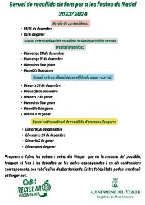 L’Ajuntament del Verger informa sobre el servei de recollida de fem extraordinari per a les properes festes nadalenques.