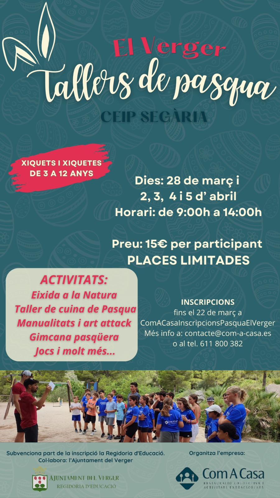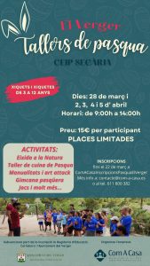 El regidor d’Educació Sergi Brogniez, informa que l’Ajuntament posarà en marxa els TALLERS DE PASQUA per als dies 28 de març i 2,3,4 i 5 d’abril en horari de 9:00 a 14 hores..