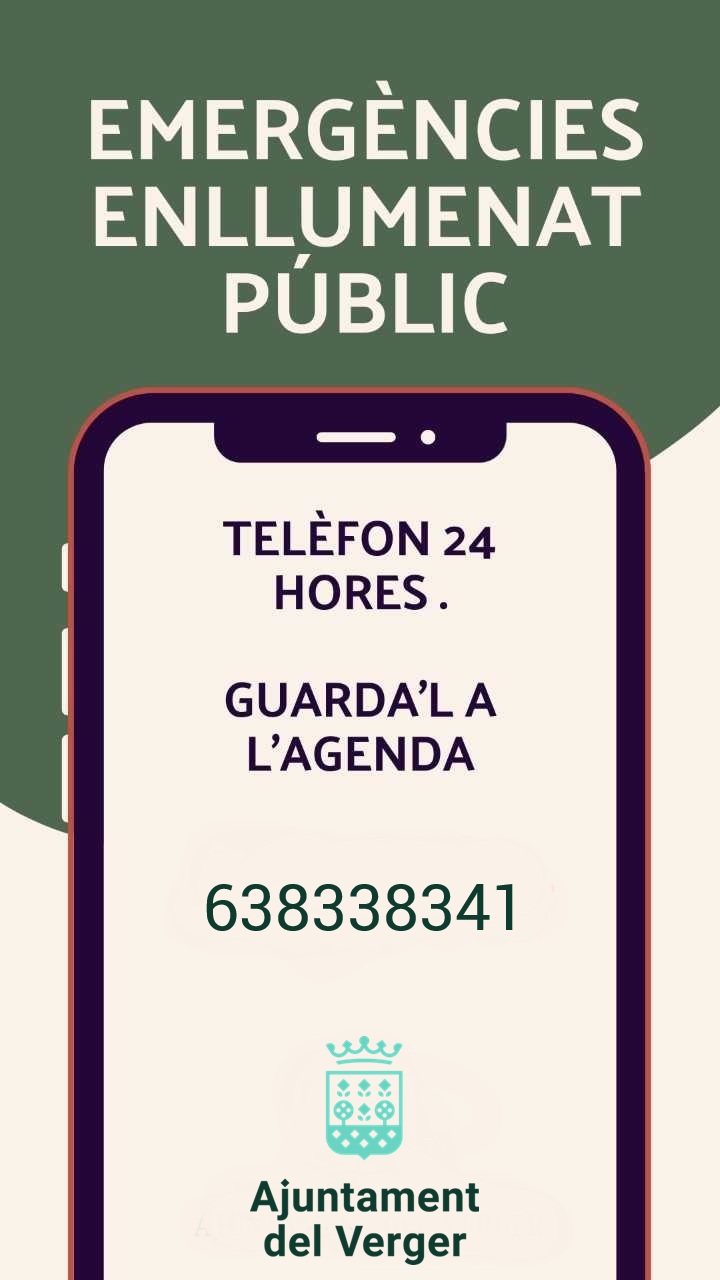Des de l’Ajuntament del Verger es comunica que ja està en funcionament un nou número de telèfon per a atendre les avaries i incidències en l’enllumenat públic.